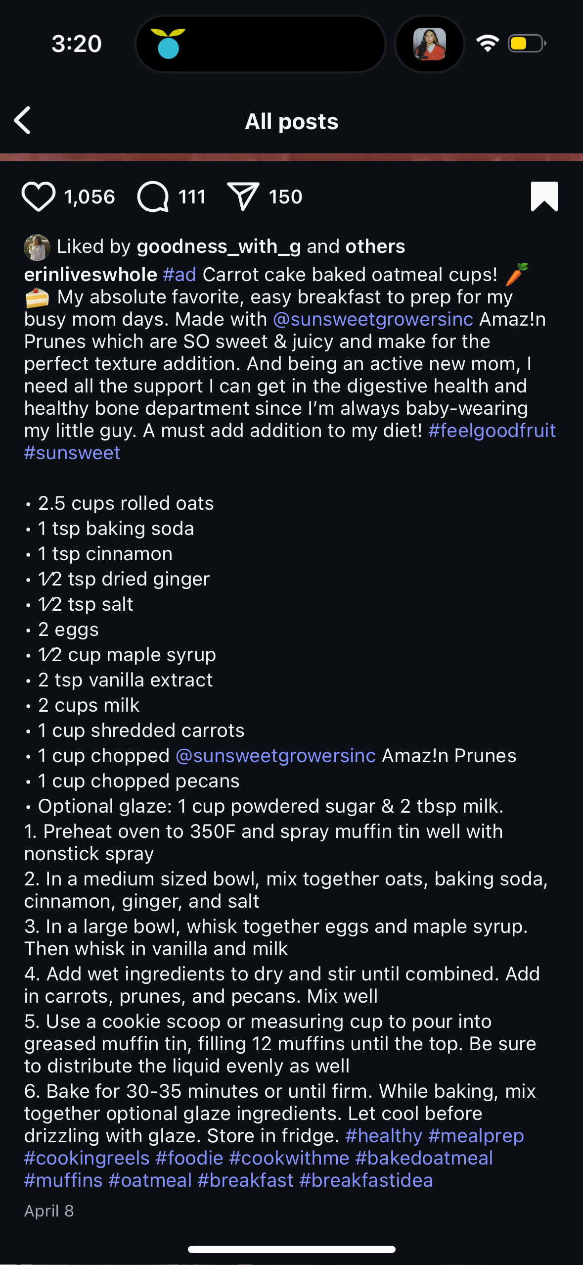 These were so much better than I expected!! Like actually delicious. I was skeptical about the recipe calling for prunes instead of raisins but they were actually great. Color me surprised.