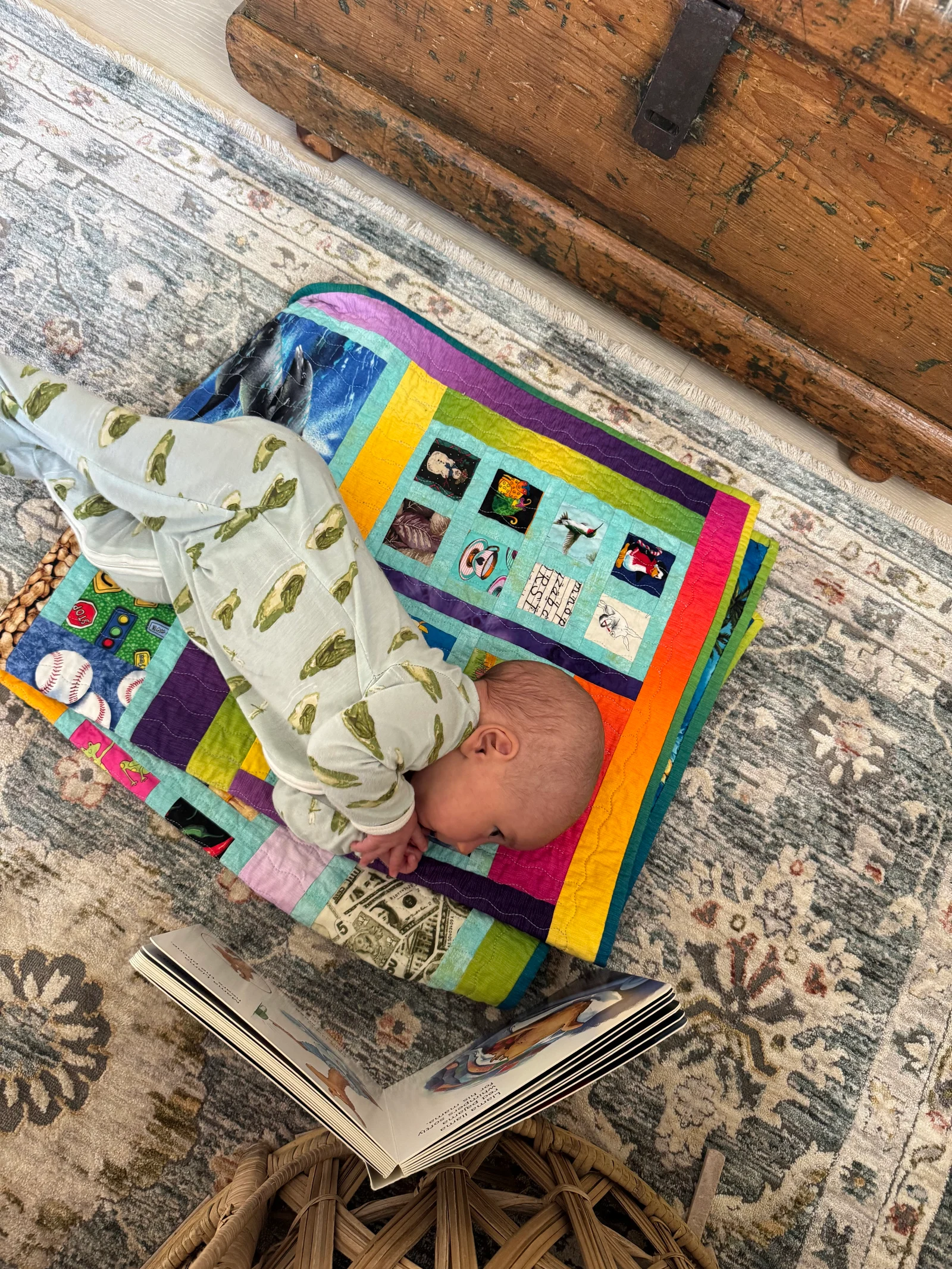 Reily’s latest trick is rolling onto his side so he can see his book better